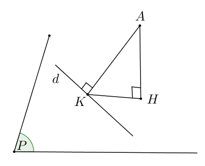Gọi mặt phẳng cần tìm là (P). Gọi H, K là chân đường vuông góc của A trên (P) và d.