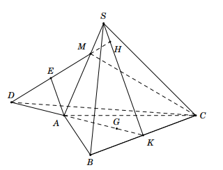 Cho hình chóp S .ABC có $G$ là trọng tâm tam giác ABC. Gọi $M$ là điểm trên cạnh SA sao cho $M A=2 M S, K$ là trung điểm BC và $D$ là điểm đối xứng của $G$ qua $A$.