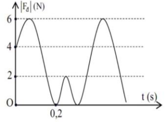 Một con lắc lò xo treo thẳng đứng đang dao động điều hoà. Hình bên là đồ thị mô tả sự phụ thuộc giữa độ lớn lực đàn hồi của lò xo \(\left| {{F_d}} \right|\) theo thời gian t. Lấy \(g = 10\,\,m/{s^2}\) và \({\pi ^2} = 10\). Chọn mốc thế năng khi lò xo không biến dạng, thế năng đàn hồi cực đại của con lắc là