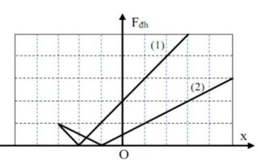 Hai con lắc lò xo được treo thẳng đứng, chọn chiều dương hướng xuống, độ lớn của lực đàn hồi tác dụng lên mỗi con lắc có đồ thị phụ thuộc vào li độ như hình vẽ. Cơ năng của con lắc (1) và (2) lần lượt là \({W_1}\) và \({W_2}\). Tỉ số \(\dfrac{{{W_1}}}{{{W_2}}}\) bằng