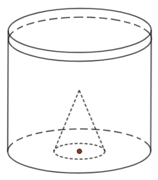 Một khối nón \((N)\) có bán kính bằng \(R\) và chiều cao bằng 18 , được làm bằng chấu liệu không thấm nước có khối lượng riêng lớn hơn khối lượng riêng của nước. Khối \((N)\) được đặt trong một cái cốc hình trụ đường kính bằng 6R, sao cho đáy của \((N)\) tiếp xúc với đáy của cốc (tham khảo hình vẽ). Đổ nước vào cốc đến khi mức nước đạt độ cao bằng 18 thì lấy khối \((N)\) ra. Độ cao của nước trong cốc sau khi đã lấy khối \((N)\) ra bằng