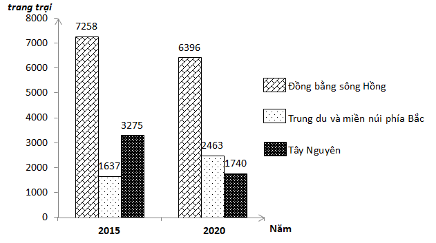 Theo biểu đồ, nhận xét nào sau đây đúng về số trang trại của các địa phương năm 2020 so với năm 2015?