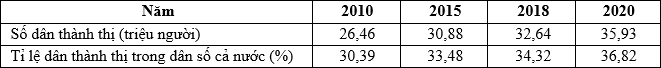 SỐ DÂN THÀNH THỊ VÀ TỈ LỆ DÂN THÀNH THỊ CỦA NƯỚC TA, GIAI ĐOẠN 2010 - 2020