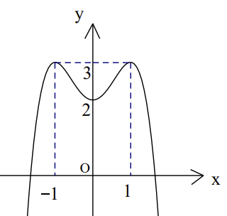 Cho hàm số \(f(x) = a{x^4} + b{x^2} + c\) có đồ thị là đường cong trong hình vẽ bên. Số nghiệm của phương trình \(f(x) = 1\) là