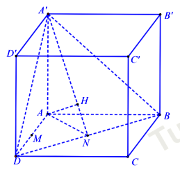 Gọi $M, N$ là trung điểm của $AD, BD$ $\Rightarrow A H=d\left(A,\left(A^{\prime} B D\right)\right)$.