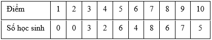 Kết quả kiềm tra môn Toán của học sinh lớp \(6{\rm{\;A}}\) được cho trong bảng sau:Số học sinh