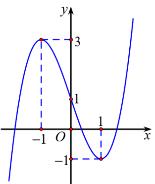 Cho hàm số bậc ba \(y = f\left( x \right)\) có đồ thì là đường cong trong hình bên dưới. Có tất