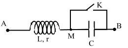 Khi K mở, mạch gồm cuộn dây không thuần cảm nối tiếp tụ điện.