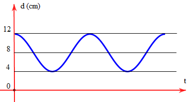 Hai vật nhỏ dao động điều hòa cùng tần số góc 10 rad/s, cùng biên độ trên hai đường thẳng vuông góc với nhau tại vị trí cân bằng chung O. Hình vẽ bên là đồ thị biểu diễn sự phụ thuộc của khoảng cách (d) giữa hai vật theo thời gian. Tại thời điểm mà gia tốc của một trong hai vật bị triệt tiêu thì vật còn lại có tốc độ bằng bao nhiêu?