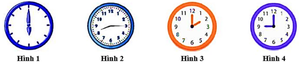 Ta có thể xem kim giờ và kim phút của đồng hồ là hai tia chung gốc (gốc trùng với trục quay của hai kim). Tại mỗi thời điểm, hai kim tạo thành một góc. Quan sát các đồng hồ sau và sắp xếp các hình đồng hồ theo thứ tự giảm dần số đo của góc tạo bởi kim giờ và kim phút.