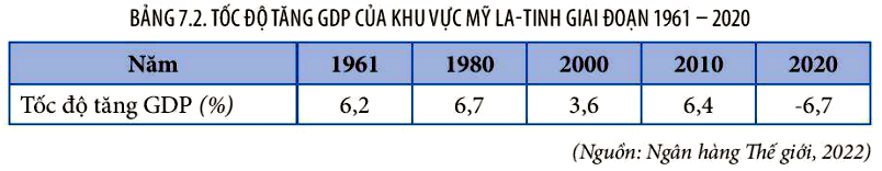 Cho bảng sau:Nhận xét tốc độ tăng GDP của khu vực Mỹ La-tinh giai đoạn 1961 -