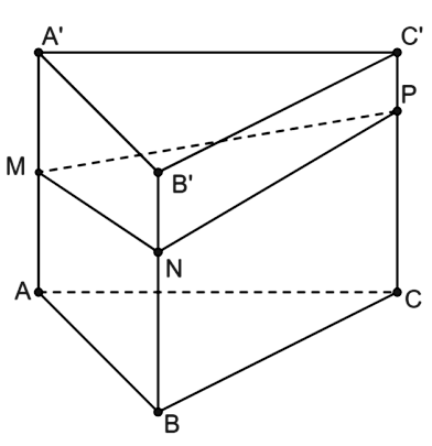 Cho khối lăng trụ ABC.A’B’C’ có thể tích bằng 2022. Mặt phẳng (P) cắt các cạnh AA’, BB’, CC’ lần lượt tại M, N, P sao cho MA = MA’, NB = 2NB’, PC = 3PC’. Tính thể tích khối đa diện ABC.MNP.