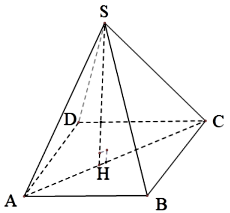 Tính thể tích khối chóp \({V_{S.ABCD}} = \dfrac{1}{3}SH.{S_{ABCD}}\).