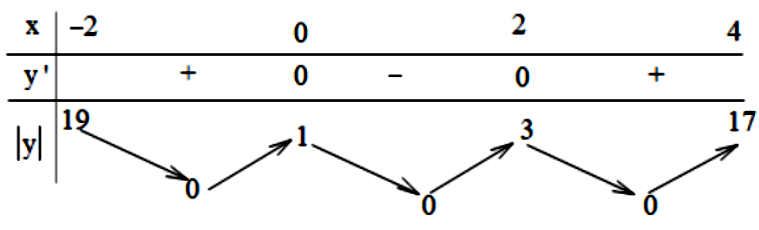 Dựa vào BBT xác định giá trị lớn nhất của hàm số \(y = \left| {f\left( x \right)} \right|\) trên đoạn [-2;4].