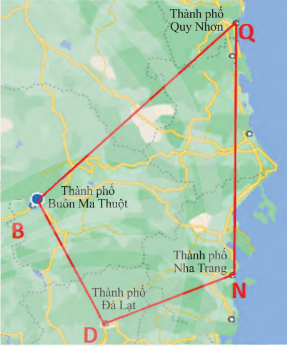 Trên bản đồ, tứ giác BDNQ với các đỉnh là các thành phố Buôn Ma Thuột, Đà Lạt, Nha Trang,