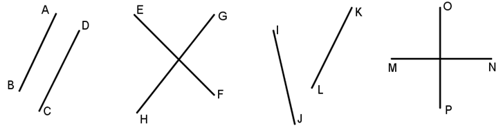Sử dụng êke, kiểm tra xem hai đường thẳng nào vuông góc.