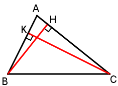 Sử dụng êke, vẽ đoạn thẳng BH đi qua B và vuông góc với AC; đoạn thẳng CK đi qua C và vuông góc với AB.