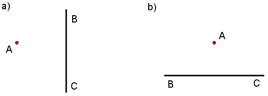 Vẽ đường thẳng đi qua A và vuông với BC trong mỗi trường hợp