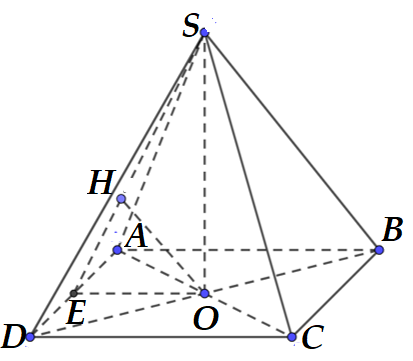 Dựng \(OE \bot AD,\,OH \bot SE\), chứng minh \(OH \bot \left( {SAD} \right)\).