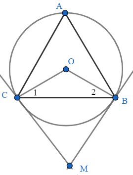 Cho tam giác đều \(ABC\) nội tiếp đường tròn \(\left( O \right)\). Các tiếp tuyến tại \({\rm{B}}\) và \({\rm{C}}\) của đường tròn \(\left( O \right)\) cắt nhau tại \({\rm{M}}\). Số đo góc \(BMC\) bằng: