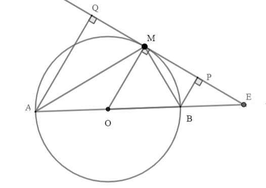 Cho điểm \(M\) thuộc nửa đường tròn đường kính \(AB = 2R(M\) không trùng với \(A,B)\). Gọi \(d\) là tiếp tuyến của nửa đường tròn tại \(M;P\) và \(Q\) lần lượt là chân các đường vuông góc hạ từ \(A\) và \(B\) xuống \(d\). Khi đó, \(AP + BQ\) bằng: