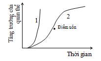 Trước điểm uốn, tốc độ tăng trưởng tăng, sau điểm uốn, tốc độ tăng trưởng của quần thể giảm dần.