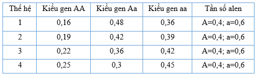 Ở một loài thực vật, khi nghiên cứu sự thay đổi thành phần kiểu gen của quần thể qua 4 thế hệ thu được kết quả trong bảng sau:
