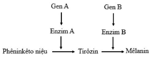 Alen đột biến lặn a không tổng hợp được enzym A dẫn tới phêninalanin không được chuyển hóa gây bệnh PKU. Alen đột biến lặn b không tổng hợp được enzym B dẫn tới dẫn tới tirôzin không được chuyển hóa. Mêlanin không được tổng hợp sẽ gây bệnh bạch tạng có triệu chứng nặng; mêlanin được tổng hợp ít sẽ gây bệnh bạch tạng có triệu chứng nhẹ hơn. Gen mã hóa 2 enzim A và B nằm trên 2 cặp nhiễm sắc thể khác nhau. Tirôzin có thể được thu nhận trực tiếp một lượng nhỏ từ thức ăn.