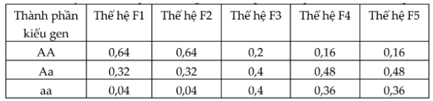 Nghiên cứu sự thay đổi thành phần kiểu gen ở một quần thể qua 5 thế hệ liên tiếp thu được kết quả: