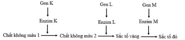 Ở một loài hoa, xét ba cặp gen phân li độc lập, các gen này quy định các enzim khác nhau cùng tham gia vào một chuỗi phản ứng hoá sinh để tạo nên sắc tố ở canh hoa theo sơ đồ sau:
