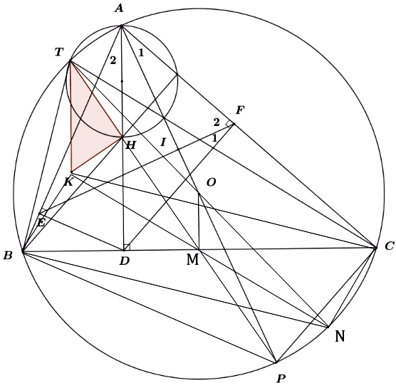 3) Gọi H là trực tâm của tam giác ABC. Đường tròn đường kính AH cắt đường tròn (O) tại điểm thứ hai T. Gọi K là trực tâm của tam giác BTC. Chứng minh AHKT là hình bình hành.