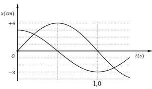 Dao động của một vật là tổng hợp của hai dao động điều hòa cùng phương, cùng tần số. Hình vẽ bên là đồ thị li độ - thời gian của hai dao động thành phần. Tốc độ dao động cực đại của vật là