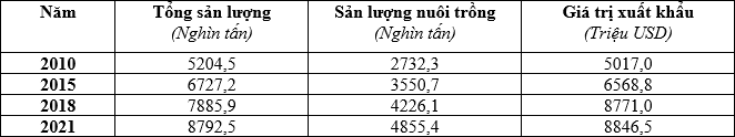 SẢN LƯỢNG THỦY SẢN VÀ GIÁ TRỊ XUẤT KHẨU THỦY SẢN CỦA NƯỚC TA, GIAI ĐOẠN
