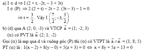 . Tìm tọa độ giao điểm của d và (P). Viết phương trình mặt phẳng chứa d và vuông góc với (P).