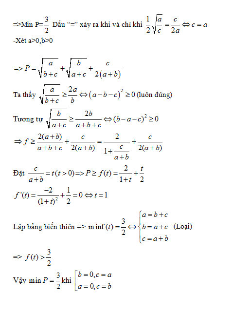 Cho các số thực a,b,c không âm và thỏa mãn điều kiện (a + b)c >0