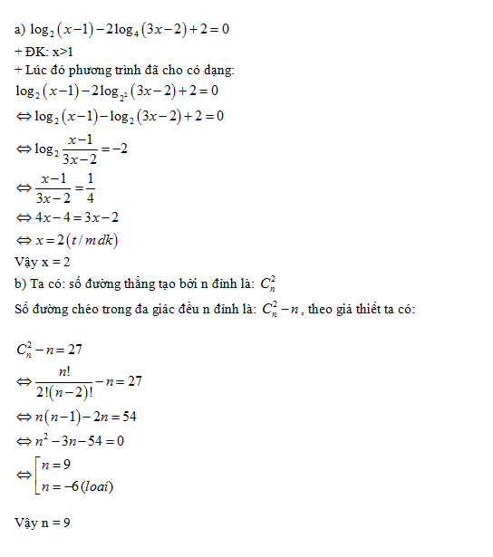 b) Cho một đa giác đều n đỉnh , n ε N và n≥3. Tìm n biết rằng đa giác đã cho có 27 đường chéo.
