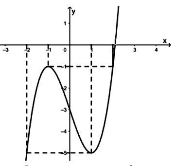 Cho hàm số y = f(x) xác định và liên tục trên \(\mathbb{R}\), có đồ thị như hình bên. Tìm giá