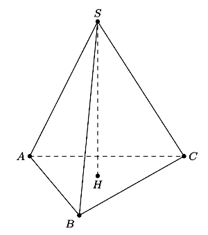 Cho hình chóp tam giác đều S.ABC có cạnh đáy bằng 3a, đường cao \(SH = a\sqrt 3 \) (tham khảo hình