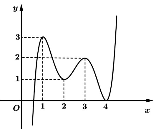 Cho hàm số đa thức bậc năm y = f(x) có đồ thị như hình vẽ:
