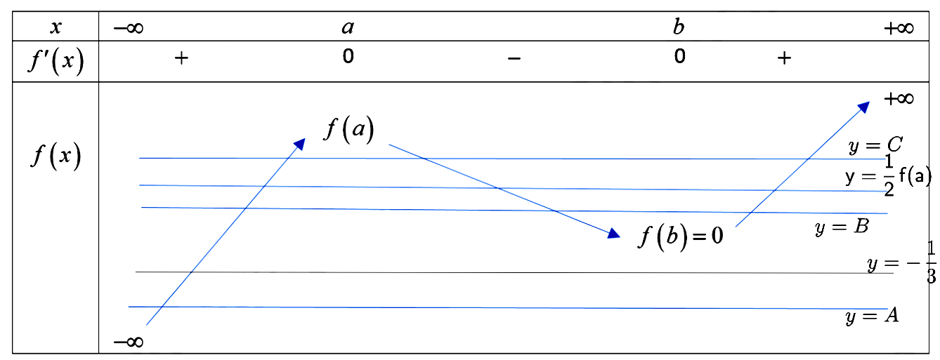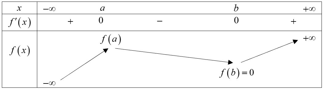 Cho hàm số \(y = f\left( x \right)\) có đạo hàm là \(f'\left( x \right) = \left( {x - a} \right)\left( {x - b}