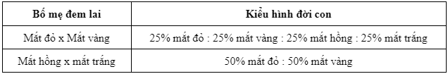 Nếu cho các cá thể mắt vàng giao phối với cá thể mắt hồng thì kiểu hình mắt vàng ở đời con có tỉ lệ