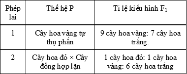 Một loài thực vật, màu sắc hoa do 3 cặp gen phân li độc lập quy định. Khi tiến hành phép lai giữa các cây, người ta thu được kết quả sau: