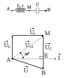 Đặt điện áp xoay chiều 100 V – 25 Hz vào hai đầu đoạn mạch mắc nối tiếp gồm cuộn dây có điện trở thuần r, độ tự cảm L và tụ điện có điện dung \(C = \dfrac{1}{{10\pi }}\,\,mF\). Biết điện áp giữa hai đầu cuộn dây sớm pha hơn dòng điện trong mạch góc \(\dfrac{\pi }{6}\) và điện áp hiệu dụng giữa hai đầu cuộn dây gấp hai lần điện áp hiệu dụng giữa hai đầu tụ điện. Công suất tiêu thụ trên toàn mạch là