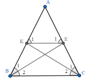 Cho tam giác ABC cân tại A đường phân giác BE và CK. Chứng minh tứ giác BKEC là hình thang
