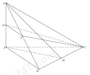 Từ đó tính $V_{S . A N C}$ từ $\dfrac{V_{S . A N C}}{V_{S . A B C}}=\dfrac{S M}{S A} \cdot \dfrac{S N}{S B}$
