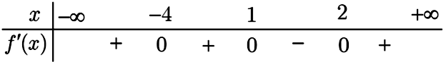 Cho hàm số \(y = f(x)\) có đạo hàm \(f'(x) = (x - 1)(x - 2){(x + 4)^2}\). Hàm số \(y = f(x)\) nghịch