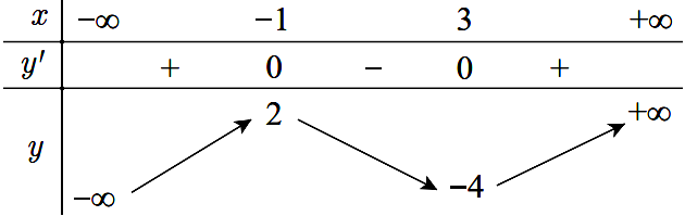 Cho hàm số \(y = f(x)\) xác định và liên tục trên khoảng \(( - \infty ; + \infty )\), có bảng biến thiên như hình vẽ: