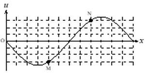 Một sợi dây đang có sóng dừng ổn định, hình vẽ bên là một đoạn sợi dây tại thời điểm \({t_0}\) đã hình thành sóng dừng. Hai phần tử dây tại M và N dao động lệch pha nhau