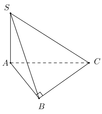 Cho hình chóp S.ABC có đáy là tam giác vuông cân tại B, SA vuông góc với đáy và AB = 4. Khoảng