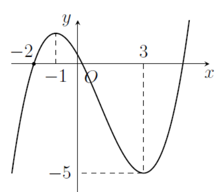 Đồ thị hàm số đi qua điểm \(( - 2;0),(3; - 5)\) và hàm số đạt cực trị tại \(x = - 1\) và \(x = 3\), lập hệ phương trình giải tìm a, b, c, d.